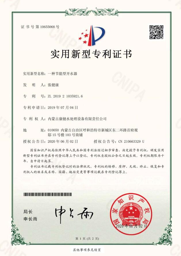 - 內(nèi)蒙古康健水處理設(shè)備有限責(zé)任公司是專業(yè)生產(chǎn)制造水處理設(shè)備、飲料設(shè)備、奶設(shè)備、殺菌設(shè)備、灌裝設(shè)備五大系列90余種配套產(chǎn)品。在反滲透、超濾、納濾、EDI模塊、等膜分離領(lǐng)域有著雄厚的技術(shù)實(shí)力,同時在水廠設(shè)計(jì)、中水回用、污水處理、分質(zhì)供水、無負(fù)壓變頻供水、鍋爐軟化水設(shè)備等領(lǐng)域有完善的技術(shù)團(tuán)隊(duì)和營銷網(wǎng)絡(luò)。公司坐落在遼闊大草原上美麗的首府——呼和浩特,是內(nèi)蒙古自治區(qū)唯一一家具有自主生產(chǎn)能力的企業(yè)。 “上善若水,水利萬物而不爭”康健水工自成立以來,始終堅(jiān)持“改善水質(zhì)、造福人類、服務(wù)社會、產(chǎn)業(yè)報(bào)國”的企業(yè)信條,以致力于開創(chuàng)人類綠色健康生活為己任,秉承“關(guān)愛生命、責(zé)任至上”的企業(yè)宗旨,成就了享譽(yù)四方的國內(nèi)知名水處理企業(yè)。 水是生命的源泉、工業(yè)的血液、城市的命脈。水是不可替代的寶貴資源。節(jié)約用水,關(guān)注點(diǎn)滴 為節(jié)約水資源貢獻(xiàn)一份力量, 健康飲水,利在當(dāng)代,功在千秋! 只有在這里,才能領(lǐng)會水的精髓;只有在這里,才...